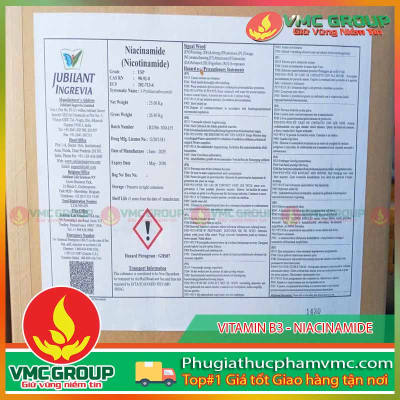 CÔNG TY CHUYÊN NHẬP KHẨU VÀ PHÂN PHỐI VITAMIN B3 – NIACINAMIDE – NICOTINAMIDE ẤN ĐỘ THÙNG 25KG